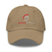 Dad hats aren't just for dads—this cap is trendy and stylish. It has an unstructured form, a curved visor, and an adjustable buckle strap. Comfort + style = win/win!. 100% chino cotton twill. Green Camo color is 35% chino cotton twill, 65% polyester. Unstructured, 6-panel, low-profile. 6 embroidered eyelets. 3 ⅛” (7. 6 cm) crown. Adjustable strap with antique buckle.